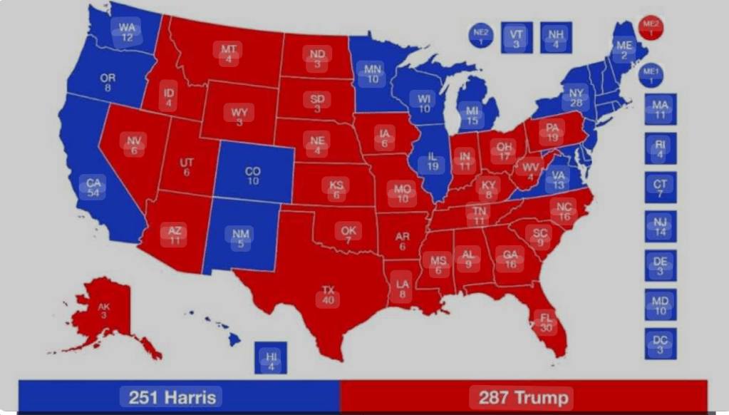 History could have been made in the United States this week. They could have elected their first female President. Kamala Harris is more than qualified for the job. She actually has political experience and is incredibly level-headed, not falling for Trump’s bait. Instead, America chose to re-elect a corrupt reality TV star who has no regard for the law and who believes that he is God. Trump is the definition of a narcissist, and yet many Americans believe that he has their best interests at heart. His re-election proves that Americans have been indoctrinated by extremism. Cults used to be shocking fringe movements that were on the very edge of society. Now, a cult has successfully gotten its leader into the White House for a second time. The next four years will be very agonising for all.